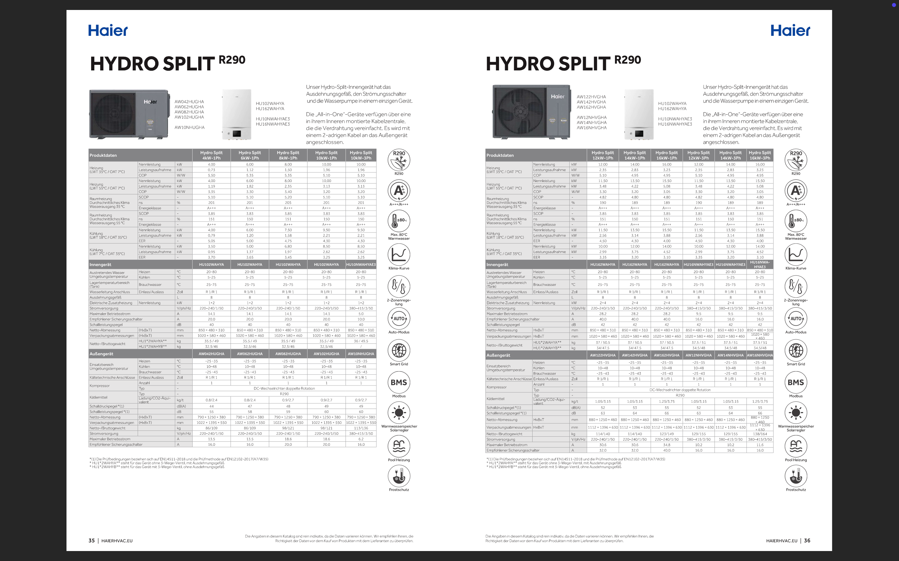 Hier kannst du das Datenblatt für den Haier Hydro Split (R290) herunterladen und alle technischen Details auf einen Blick einsehen – von Kühl- und Heizleistung bis zu Features wie mehrere Inneneinheiten, Inverter-Technologie und integrierter Luftfilter.